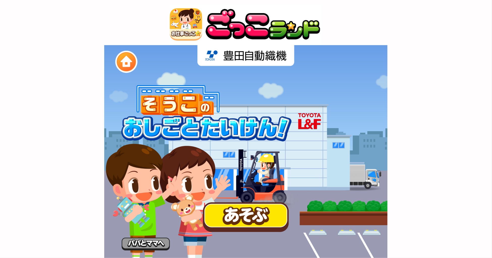 本ゲームを協賛する株式会社豊田自動織機(以下「豊田自動織機」)は、繊維機械事業を原点に、自動車事業と産業車両・物流事業を展開しています。豊田自動織機によるトヨタL&Fブランド物流機器が様々なところで活躍し、産業のみならず人々の生活を支える存在であることを子どもたちが知るきっかけになればという想いから、『ごっこランド』への出店が実現しました。