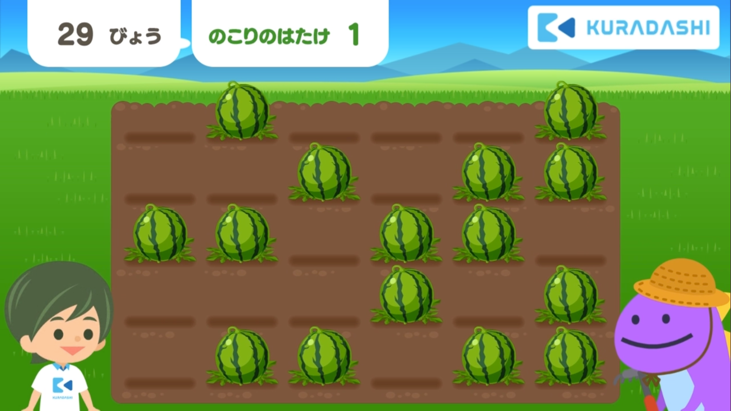 ①しゅうかく :作物をなぞって収穫しよう!