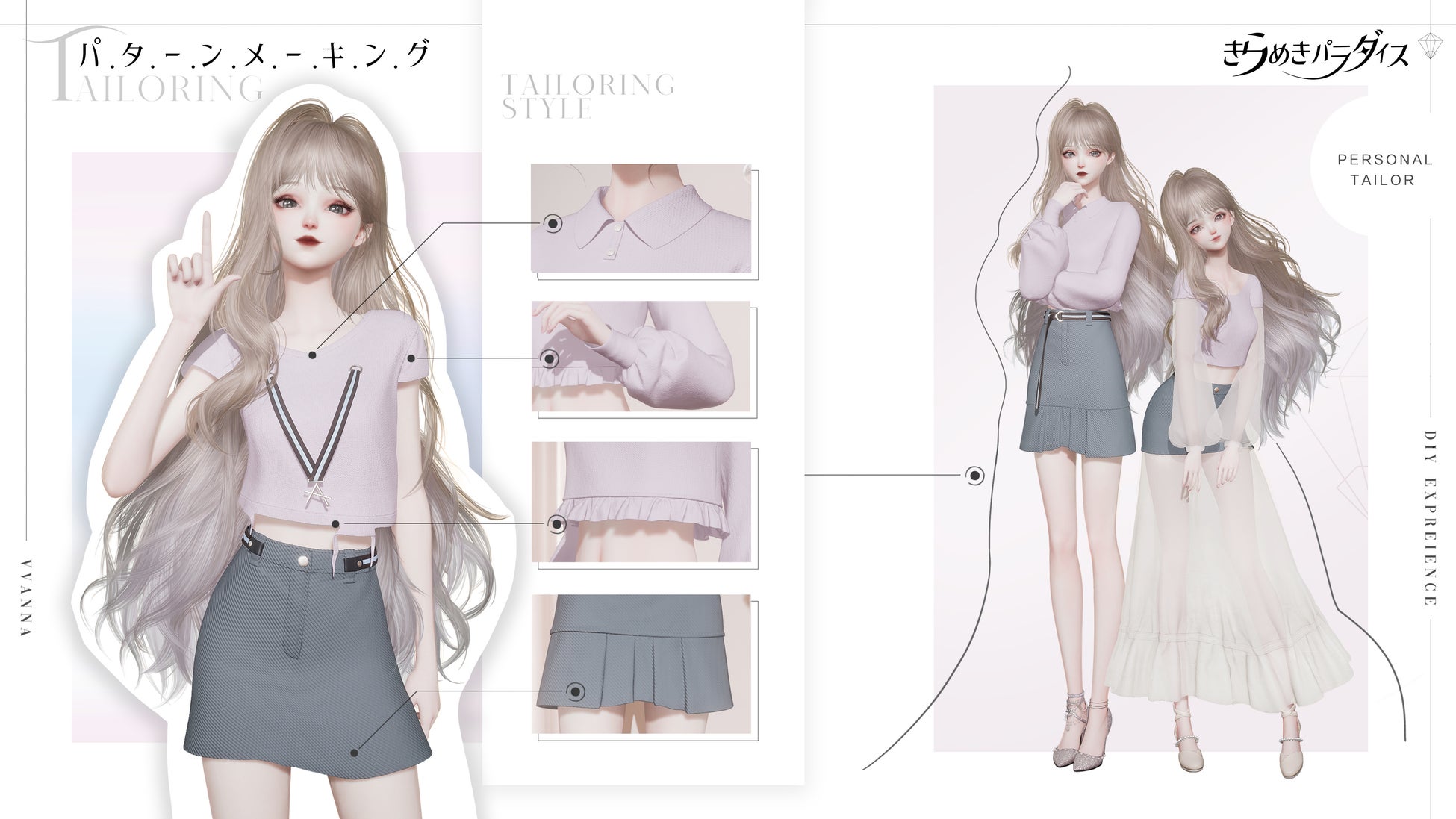 リアリティさを追求しているだけでなく、『きらめきパラダイス』では様々なジャンルの衣装が豊富に実装されています。時代や国の垣根を超えたお姫様の姿から、パンクロックが似合いそうな服装まで、組み合わせも自由自在です。更にゼロから衣装をデザインするシステムもあります。生地を選ぶところから、色や装飾など細かく自分好みの服を設計できるのです!そして更に楽しんでいただける機能として、自由に変えられるのは服装だけではありません。顔や体型までもが思いのままです。『きらめきパラダイス』は固定概念の美に囚われない、自由な表現を後押しします!