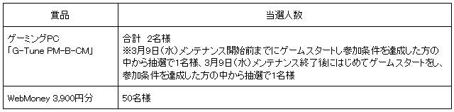 期間中、参加条件を達成して応募することで、ゲーミングPC「G-Tune PM-B-CM」や「WebMoney3,900円分」が抽選で当たります。