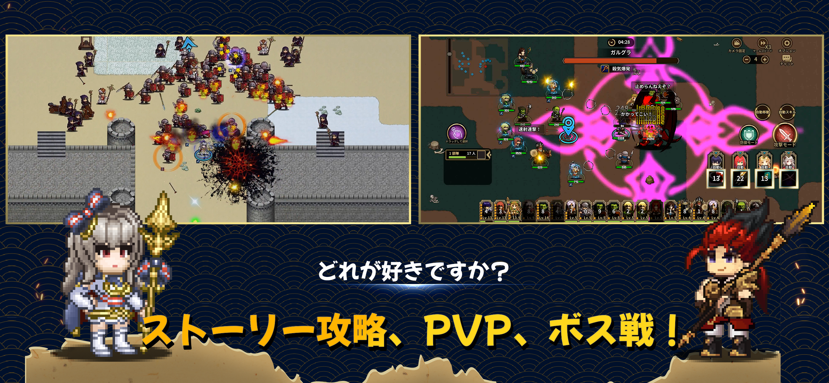 また、どこか懐かしいドット調のグラフィックやキャラクターイラストも特長で、数百種類もあるクラスから傭兵を集めたり、アイテムの収集をしたりなど、コレクション性も楽しめるゲームとなっております。