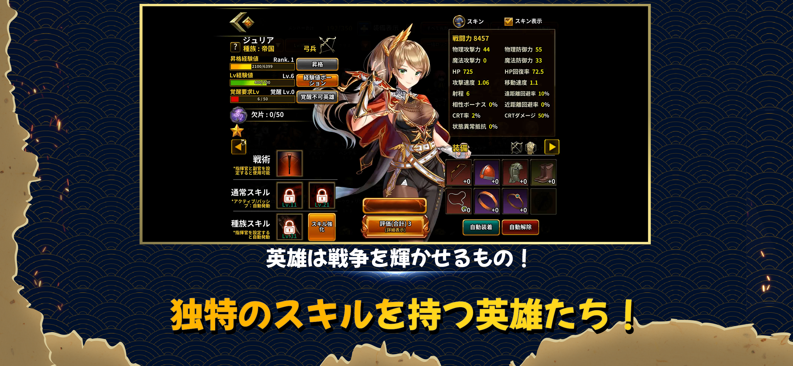 騎馬兵を単独で突進させる突撃陣形や、射手で遠距離攻撃を与える射撃陣形など、臨機応変に陣形を組み換えて部隊の指揮をとってください。