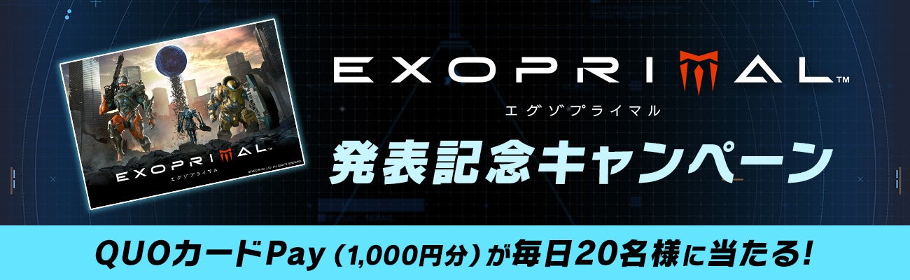 カプコンの最新作『エグゾプライマル』の発表を記念して、本日より3月18日(金)まで、毎日当選チャンスがあるプレゼントキャンペーンを実施いたします。