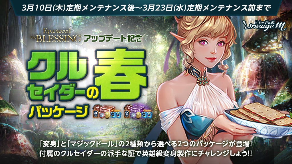 「上級変身ガチャパック(イベント)」と「上級マジックドールガチャパック(イベント)」の2種類から選べる「クルセイダーの春パッケージ(変身)」と、「クルセイダーの春パッケージ(マジックドール)」」の2つのパッケージが登場しました。