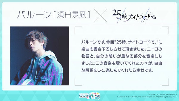 バルーン(須田景凪)さんには「25時、ナイトコードで。」のユニット楽曲を提供いただきます。