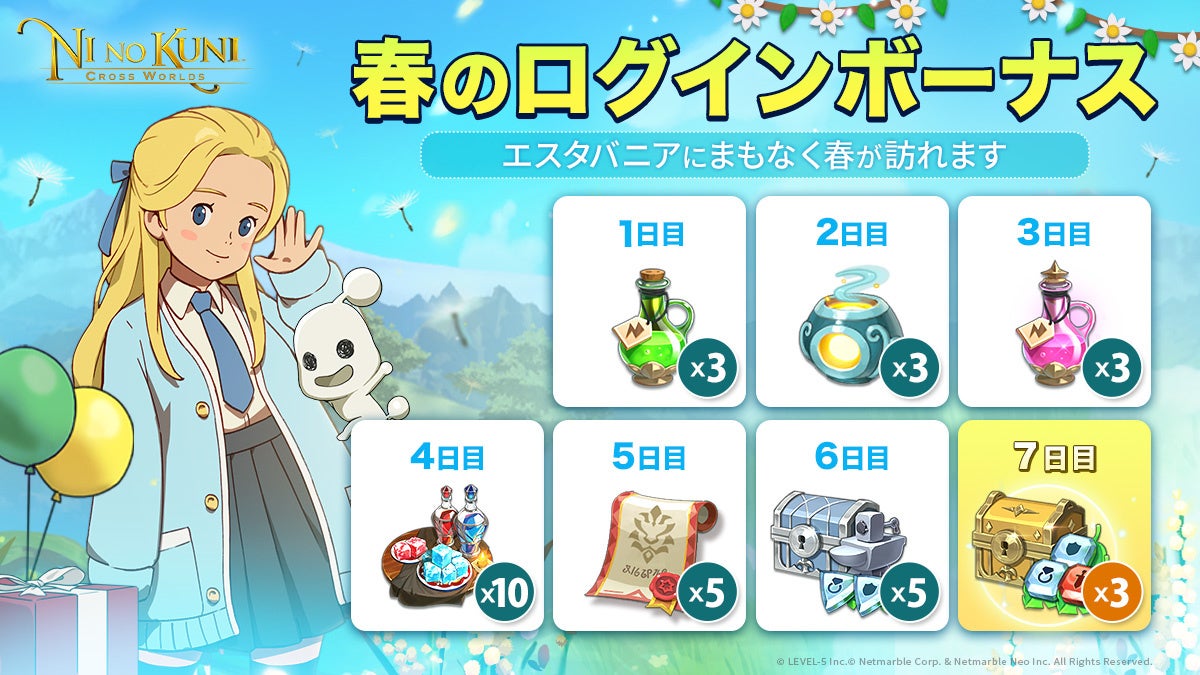 ネットマーブルは、レベルファイブとタッグを組みサービスを提供しているファンタジーアートRPG『二ノ国:Cross Worlds』(略称:ニノクロ)において、本日3月10日(木)に、春の到来を記念した新コスチュームや新イベントを追加するアップデートを実施したことをお知らせいたします。