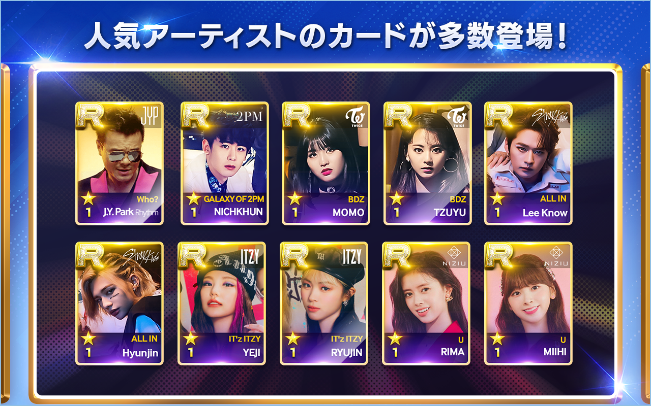 『SUPERSTAR JYPNATION 』とは、K-POP界を代表する多くの人気アーティストを発掘・輩出してきたJYPエンターテインメント所属アーティストの楽曲が楽しめる、日本初JYPエンターテインメント公式リズムゲームです。