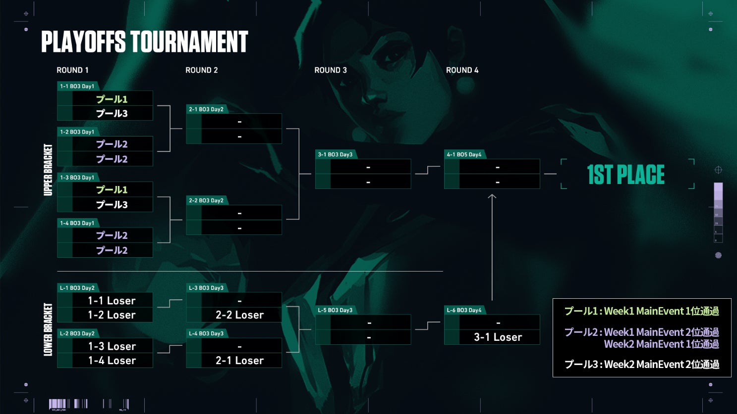 WEEK1 / WEEK2 Main Event の結果により、Playoffs における組分けが決定いたします。