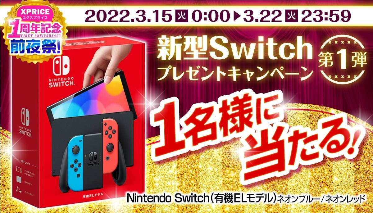 ECサイト「XPRICE(エクスプライス)」公式Twitterは、2021年のブランドリニューアルから1周年を記念し、前夜祭として「Nintendo Switch (有機ELモデル)」が合計1名様に当たるキャンペーンを3月15日(火)からスタートします!