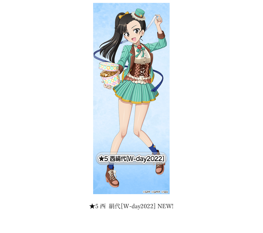 3月14日(月)15時から開始する3月後半大演習イベントでは、★5 西 絹代[W-day2022]が新規生徒として登場いたします。