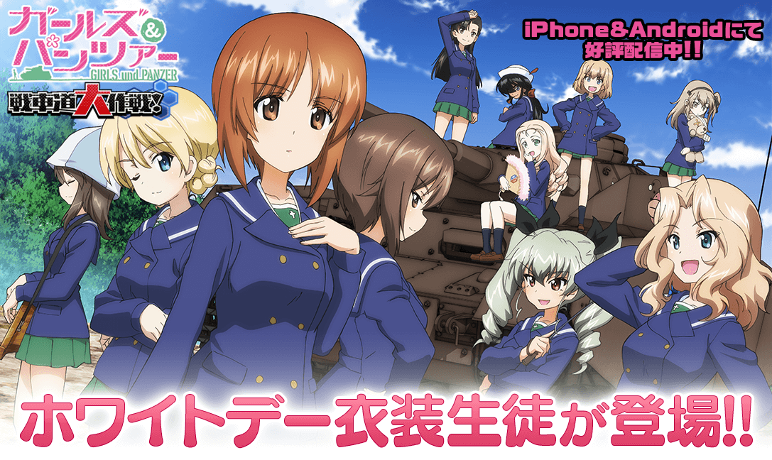 株式会社モブキャストホールディングス(本社:東京都港区、代表取締役CEO 藪考樹)の子会社である株式会社モブキャストゲームス(本社:東京都港区、代表取締役CCO:細野博孝)が参画する戦車道大作戦実行委員会(株式会社博報堂DYミュージック&ピクチャーズ、株式会社モブキャストゲームス)は、iOS/Android向けゲーム『ガールズ&パンツァー 戦車道大作戦!』において、ホワイトデー衣装生徒登場についてお知らせいたします。