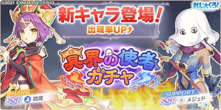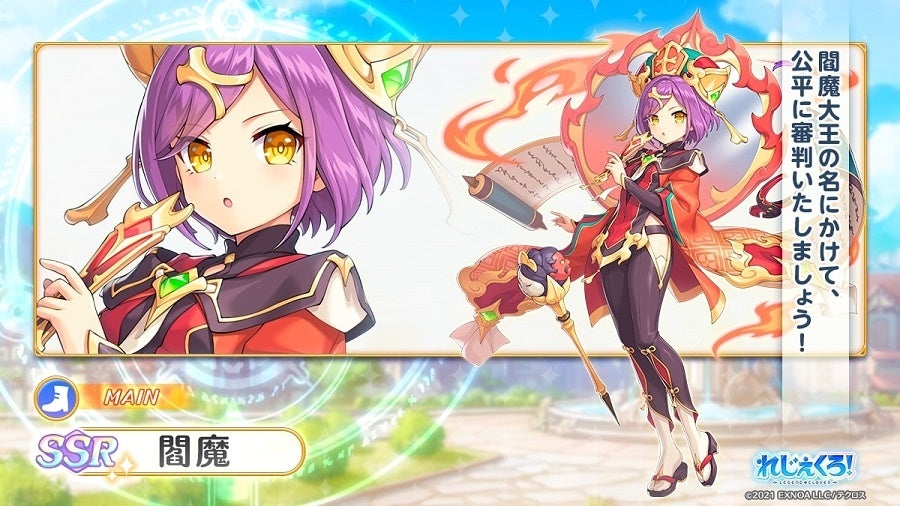 合同会社EXNOA(本社:東京都港区、CEO:村中 悠介、URL:https://games.dmm.com/)が運営するDMM GAMESにおいて、真の英雄となる王道ファンタジー『れじぇくろ!~レジェンド・クローバー~』(https://www.legend-clover.net/)は、新キャラクター「閻魔」と「メジェド」が登場したことを発表した。さらに、期間限定でギルドクエストEXが開催することも発表された。