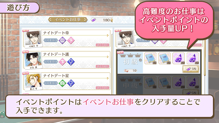 高難度のお仕事では、イベントポイントの入手量が増加します。
