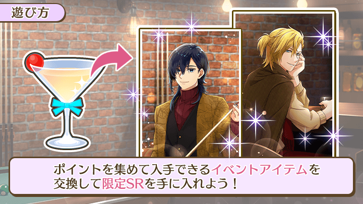 イベントアイテム「秘密のカクテル」を手に入れて、イベント限定のSRフォトカードと交換しましょう!
