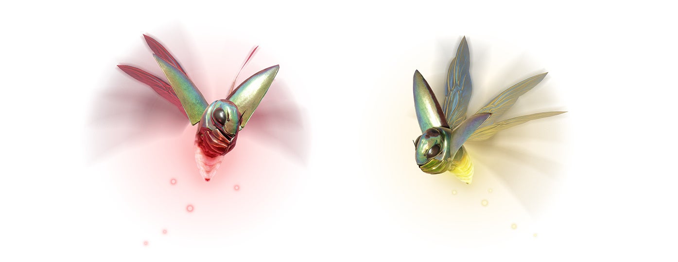 変幻翔蟲・紅と変幻翔蟲・金の2種類生息し、捕まえると一定時間下記の効果が得られる。