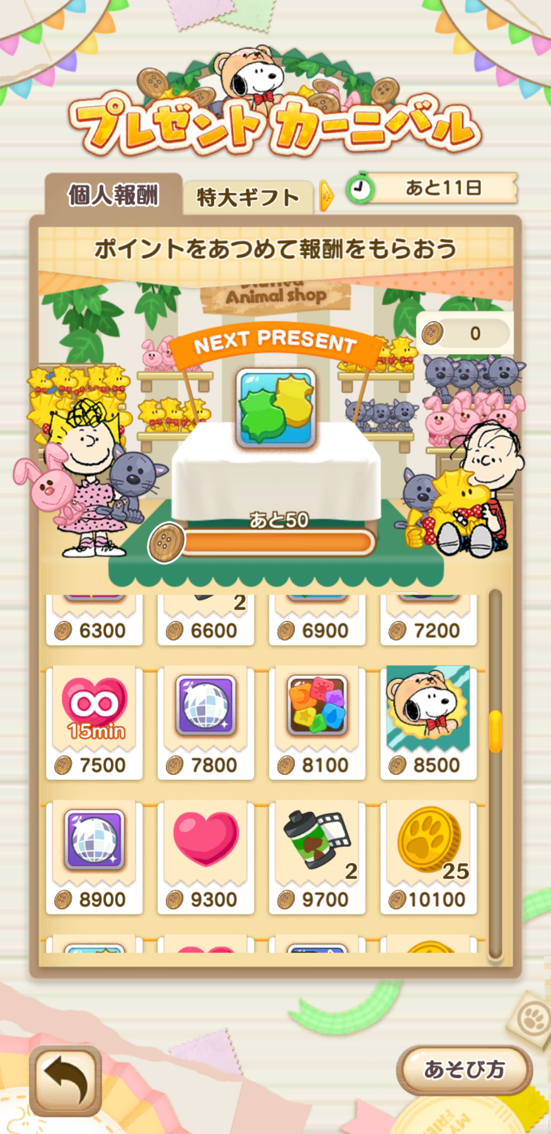 8500pt入手すると、本イベントの目玉報酬であるパートナー、“スヌーピー/テディベア”がGETできますよ!