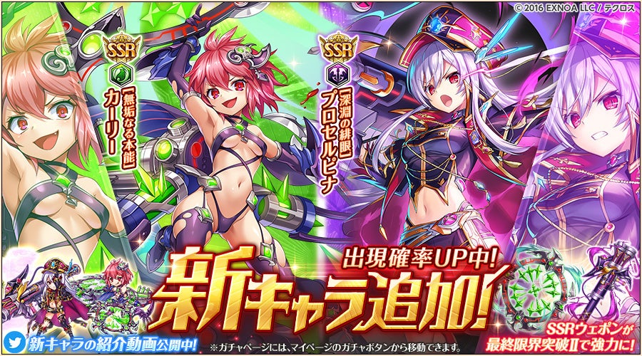 合同会社EXNOA(本社:東京都港区、CEO:村中 悠介、URL:https://games.dmm.com/)が運営するDMM GAMESにおいて『神姫PROJECT A』は、本日、「プロセルピナ」はSSR昇格、「カーリー」は新衣装で再登場したことを発表した。さらに、SSR幻獣が手に入る降臨戦イベントも開催しているほか、リリース6周年カウントダウンログインボーナスも開催される。