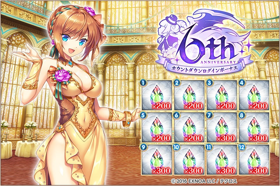 記念すべき日に先立ちまして、リリース6周年カウントダウンログインボーナスを開催いたします。