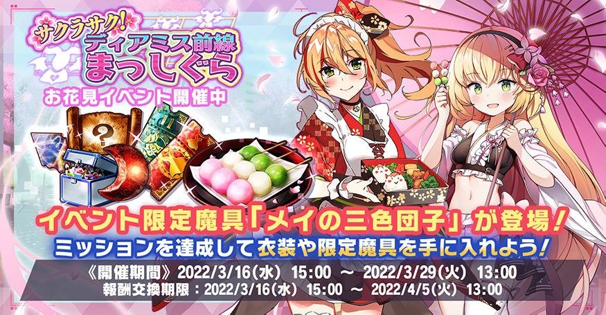 3月16日(水)より、お花見イベント「サクラサク!ディアミス前線まっしぐら」を開催しております。