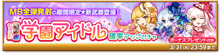期間限定武器「学園アイドルの魔神器」シリーズが、魔銃/覇双/羅刹の3武器種、6属性で登場です。