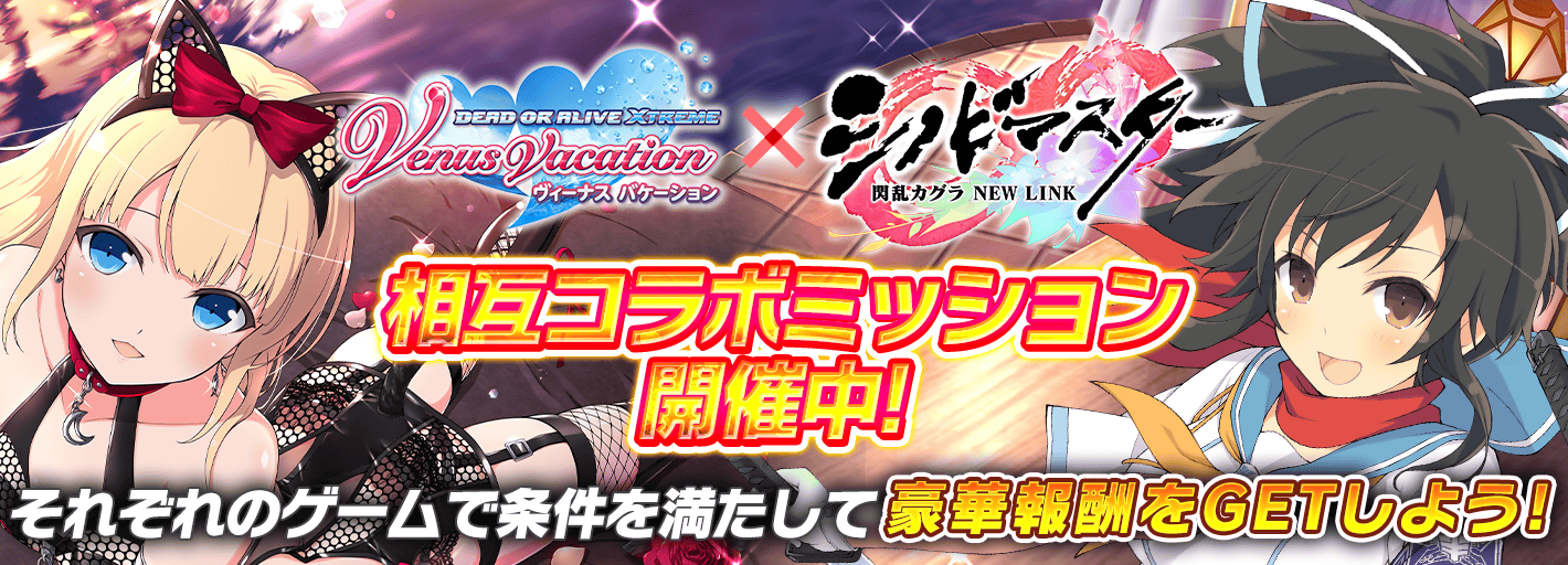 株式会社HONEY∞PARADE GAMES(代表取締役 三浦徹朗/所在地:東京都品川区)の『シノビマスター 閃乱カグラ NEW LINK』は、『DEAD OR ALIVE Xtreme Venus Vacation』とのコラボレーション第3弾を本日より開始いたしました。