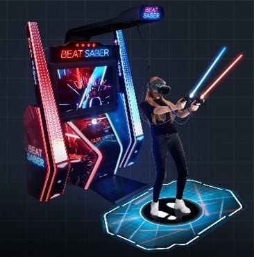 人気のVRリズムゲーム。音楽に合わせて飛んでくるブロックを、色と方向を正しく合わせてサーベルで切りながら、まるで踊るようにプレイができます。