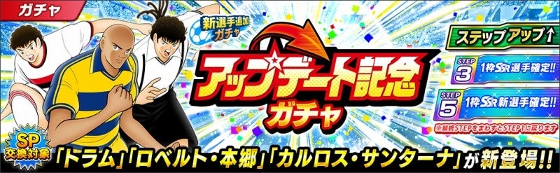 「トラム(パルマ)」、「ロベルト・本郷(サンパウロ)」、「カルロス・サンターナ(バレンシア)」が新選手で登場するSP交換対象(※天井あり)のガチャを開催!