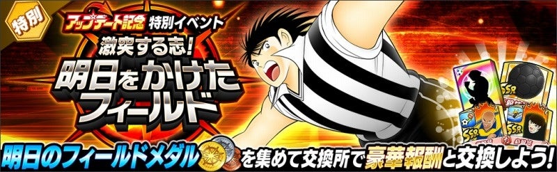 クリアで「明日のフィールドメダル」が獲得可能。集めたメダルは交換所で「SSR確定ガチャチケット」や「ドリームポットガチャチケット」のほか、「上限突破リセット券」、「[必殺技ランクS]強烈なタックル(ロベルト・本郷)」、「[必殺技ランクS]強引なパスカット(トラム)」などの豪華報酬と交換することができるぞ!