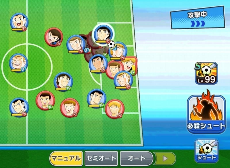 試合中、あらかじめ設定した必殺技(地上シュート)をすぐに発動できるボタンが追加されます。