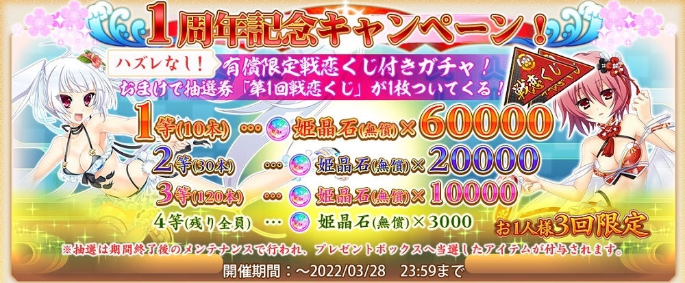 ▼期間限定『1周年記念キャンペーン』戦恋くじ付きガチャ開催!