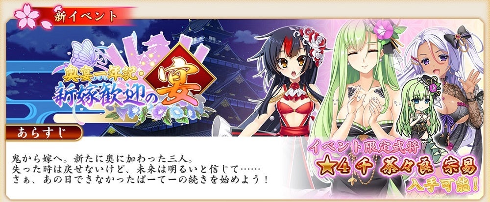 『奥宴一年記・新嫁歓迎の宴』イベント開催中は毎日限定ログインボーナスが!