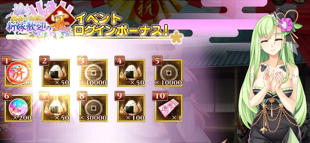 ★毎日ログインして豪華報酬GET!『奥宴一年記・新嫁歓迎の宴』イベントログインボーナス!