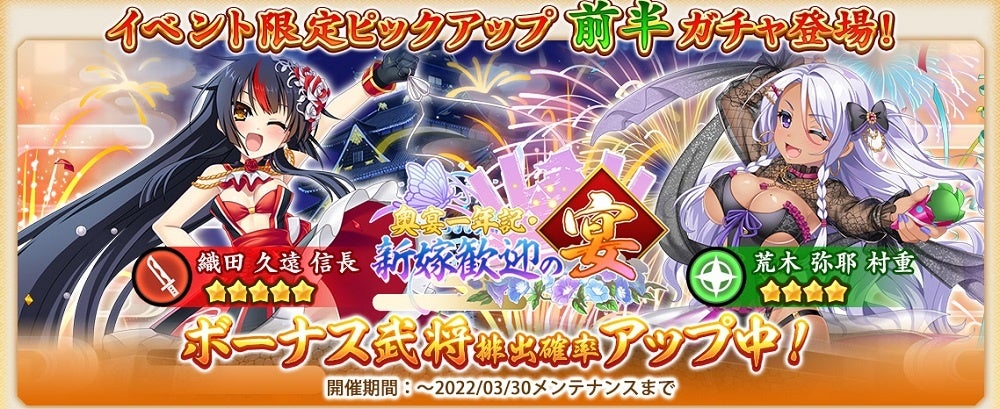 ▼期間限定『奥宴一年記・新嫁歓迎の宴』ピックアップ前半ガチャ開催中!
