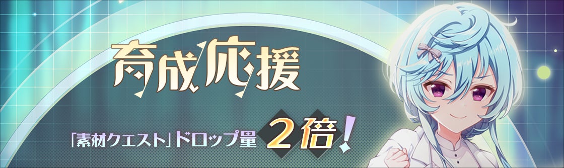 キャンペーン期間中、素材クエストクリア時にドロップする素材アイテムの獲得量が、通常の2倍になります。