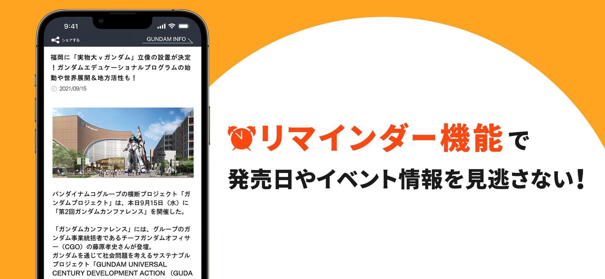 本アプリにはアニメ・ガンプラ・ゲーム・イベントなどガンダムニュースが全て集約されています。また、各公式ガンダム動画がこのアプリ1つで視聴可能なほか、アニメシリーズの登場人物やMS(モビルスーツ)などのデータが閲覧可能な公式データベースも搭載しています。そして、使えば使うほどにあなた好みに最適化された情報が表示されるようになるとともに、気になるニュースはリマインダー機能で忘れないようにプッシュ通知設定ができるなど、便利な要素が盛りだくさんです。