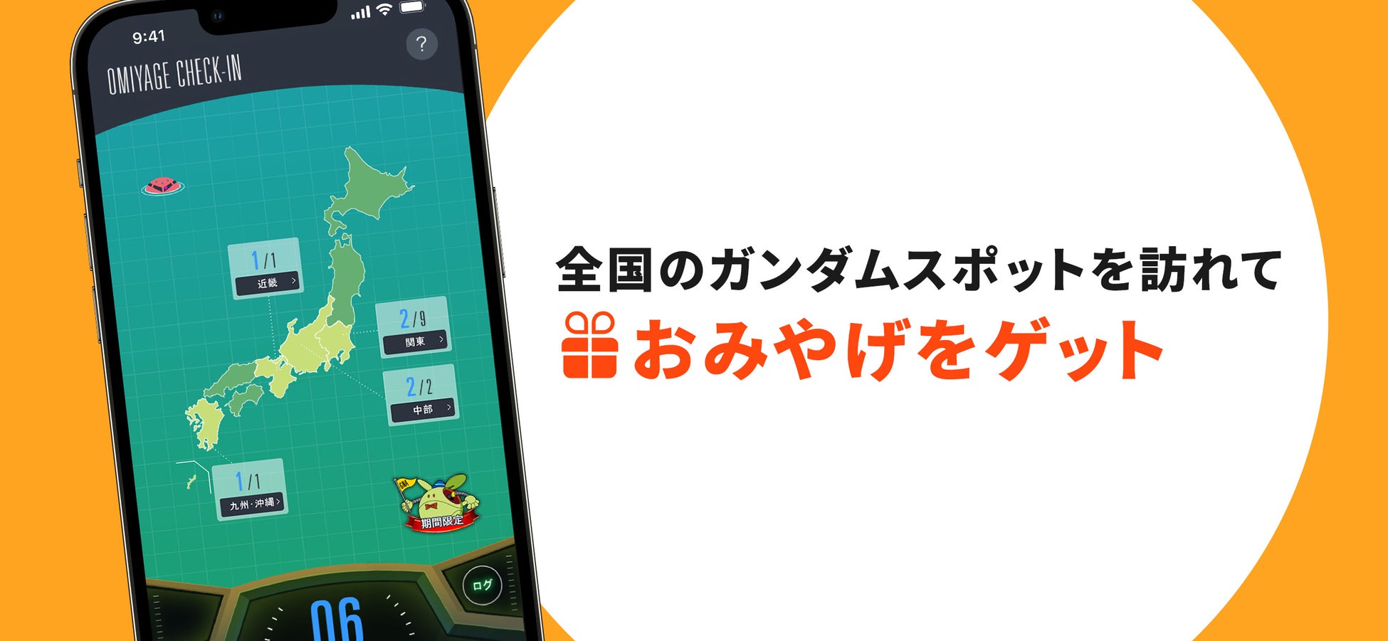 各地のガンダム関連施設にGPSチェックインすることで、施設固有の「おみやげ」アイテムを獲得できます!「おみやげ」は、コレクションをしたり、フレンドと贈り合ったりできます!