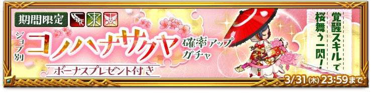 期間中、「ジョブ別 コノハナサクヤ確率アップガチャ」を販売します。