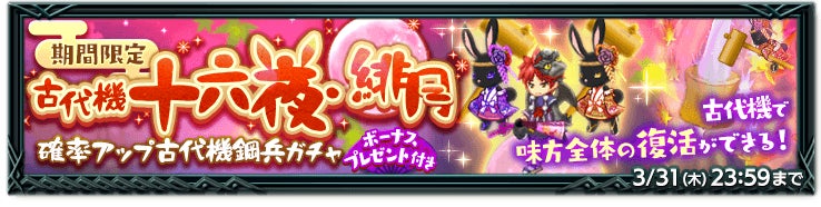 <古代機鋼兵で味方全体復活!「古代機十六夜・緋月確率アップ 古代機鋼兵ガチャ」販売!>