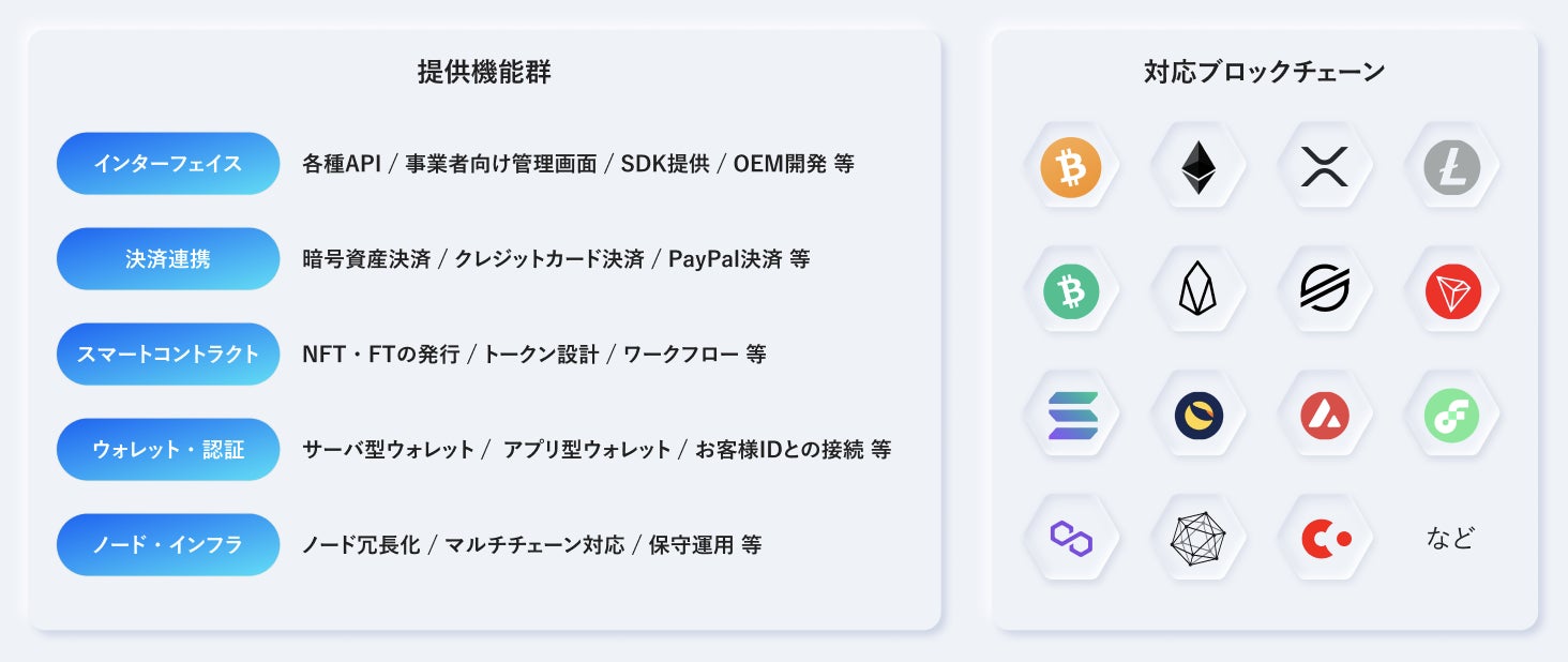 ・ブロックチェーンノードの保守やウォレットのOEMまでシステム全般を網羅的にサポート