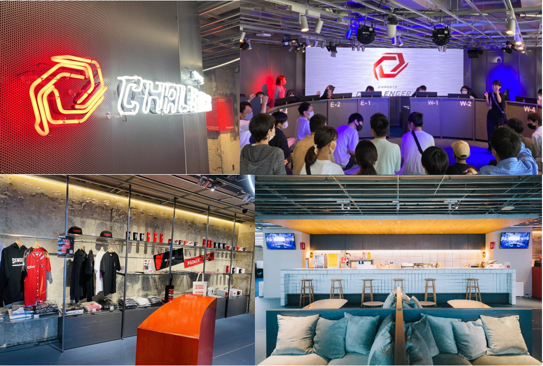 チャレパはこの200インチを超える大画面を備えた円形スタジアムやオリジナルメニューも楽しめるカフェ、eスポーツを楽しむプレイエリアなどを7つのエリアからなる施設です。