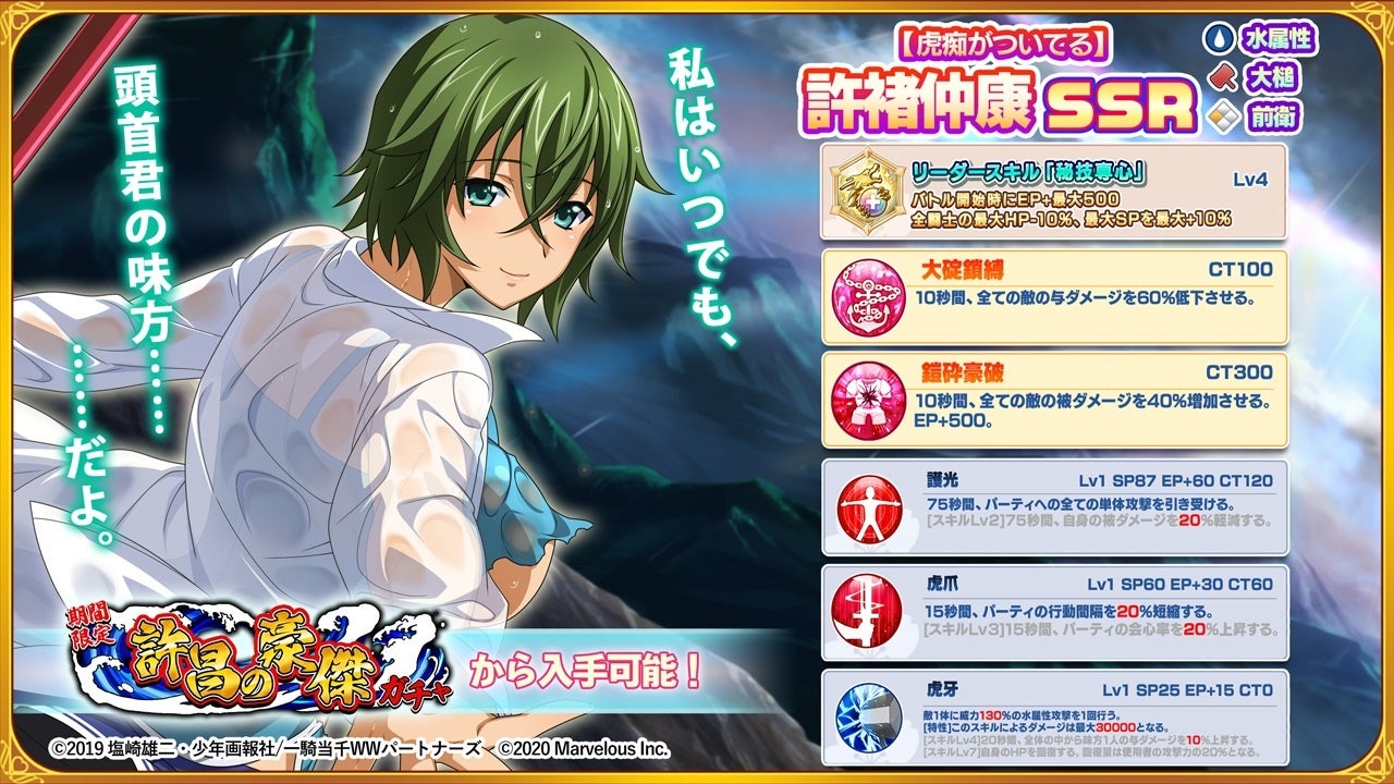 権利表記 :(C) 2019 塩崎雄二・少年画報社/一騎当千WWパートナーズ (C)2020 Marvelous Inc.