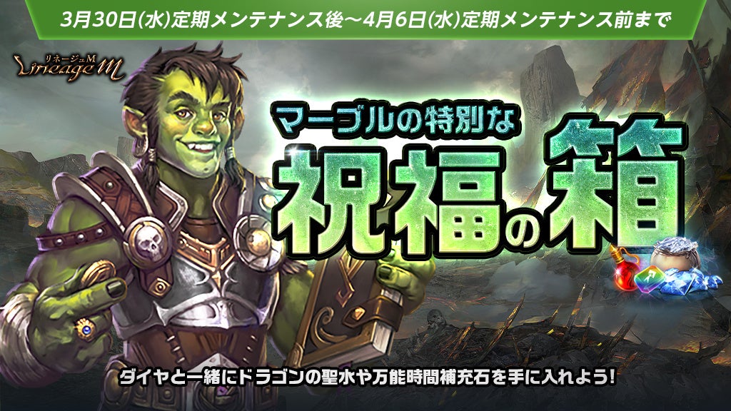ダイヤに加え、「ドラゴンの聖水(イベント)」「万能時間補充石(イベント)」「ドラゴンのダイヤモンド」が獲得できる「マーブルの特別な祝福の箱」が登場しました。