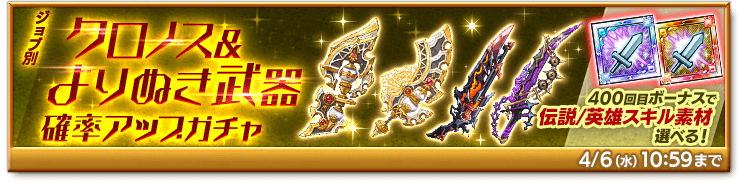 <スキル素材が選べるボーナスにも注目!「ジョブ別 クロノス&よりぬき武器確率アップガチャ」販売!>