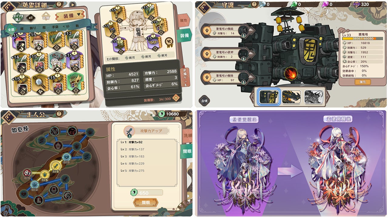 ◆英霊の育成ではレベルアップや星上限の突破(限界突破)、スキル強化・覚醒などの豊富な育成要素が用意されています。