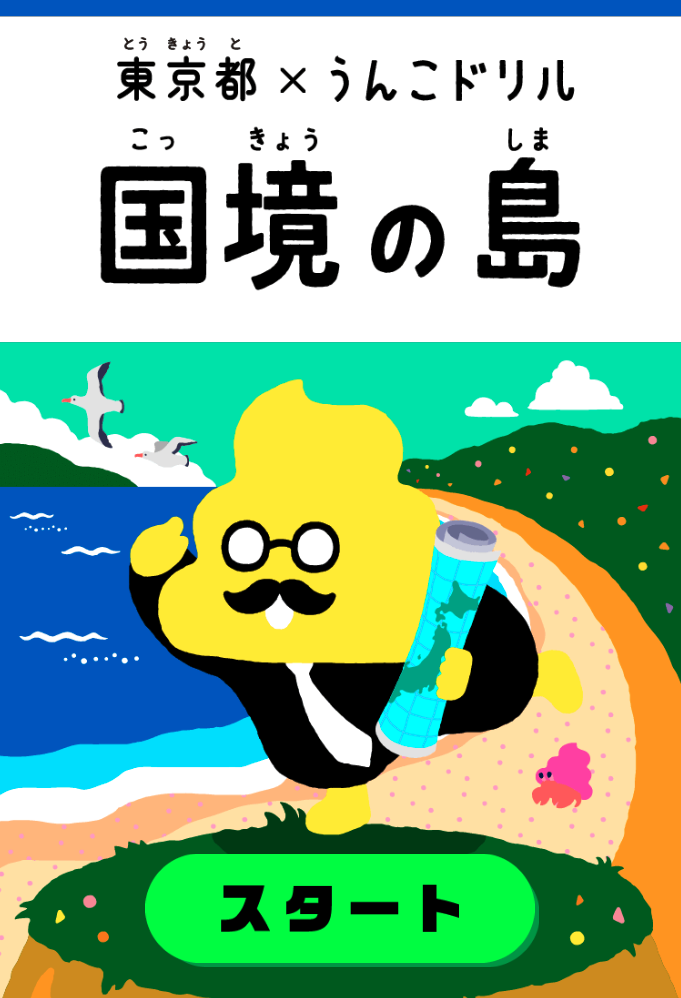 日本最南端・最東端の国境離島である小笠原諸島の沖ノ鳥島・南鳥島について、小さなお子様にも楽しんで学んでいただけるよう、『国境離島(こっきょうりとう)』についてユーモアを交えて笑いながら学べる、オンラインの啓発コンテンツ「東京都×うんこドリル 国境の島」を公開いたします。