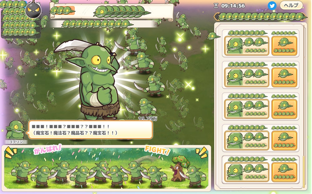 他にも、フィーバータイム中に降ってくるアビス「ゴブリン」の顔をクリックすると、