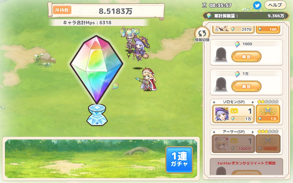 採掘した魔宝石を使ってキャラクターを解放すると、