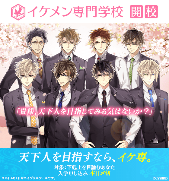 株式会社サイバード(本社:東京都渋谷区、代表取締役社長 兼 CEO 本島 匡、以下「サイバード」)が手掛ける、全世界でのシリーズ累計会員数3,500万人を誇る女性向け恋愛ゲーム「イケメンシリーズ」は、2022年4月1日(金)のエイプリルフールに合わせて、『イケメン戦国◆時をかける恋』では「イケメン専門学校」の開校、『イケメン源氏伝 あやかし恋えにし』ではリアリティーショー開催など、シリーズの各タイトルで様々な特別豪華企画を発表しました。