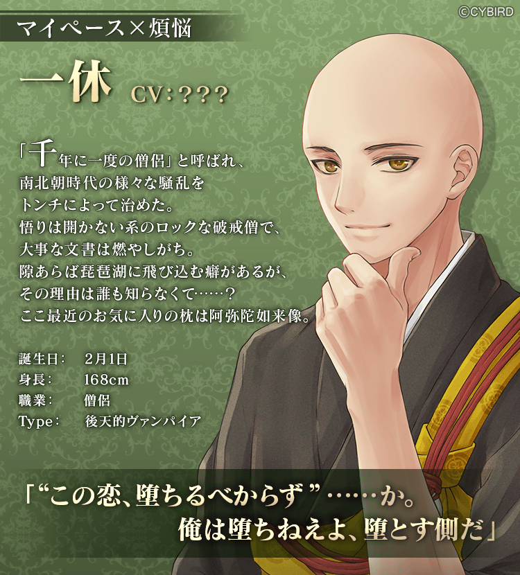 怖いもの知らずの破戒僧「一休」って、どんなヴァンパイア……!? 「一休」の事が気になってきたというあなたは、ぜひこちらのプロフィール紹介画像をチェックしてみてください。