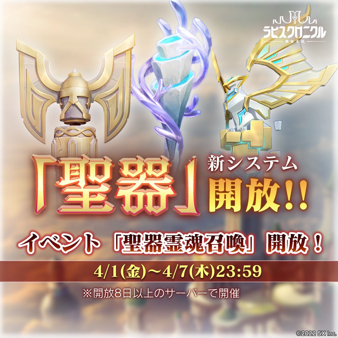4/1(金)~4/7(木)に開催の「聖器霊魂召喚」イベントで聖器や強化素材を入手することができます。